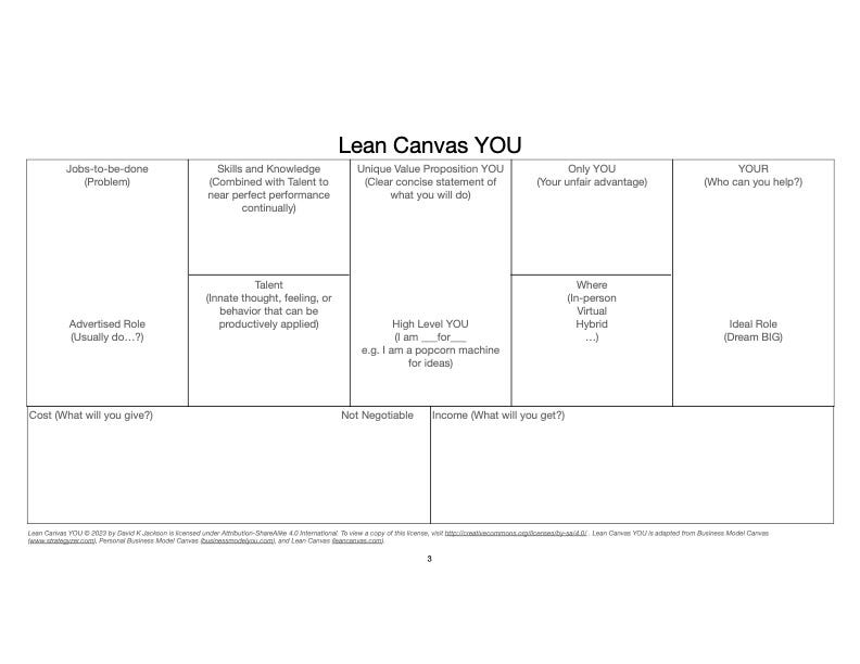 HowTo for the lean canvas. My initial set of directions for use of Lean Canvas YOU.
